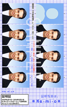 証明写真LOVERのkemioが、証明写真機 「Ki-Re-i」アンバサダーに就任! アンバサダー就任期間は、2025年6月1日~2026年5月31日の1年間!筐体も印刷台紙も、特別なkemio仕様に塗り替えて、証明写真の楽しさと魅力を、みんなにシェアハピします!